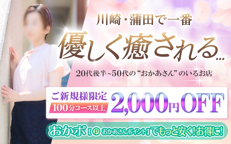 各所で根強い人気を誇るおかあさんグループが新たに川崎蒲田エリアに進出!30代から60代の女性と心温まるひとときを過ごせるお店だ。「母性と癒し」をコンセプトに、さまざまなタイプの女性が揃っており、あなたのお気に入りがきっと見つかる。初々しい奥様とのリアルな体験や、美熟女との非日常を楽しみたい方は足を運んでみてはいかがだろうか?