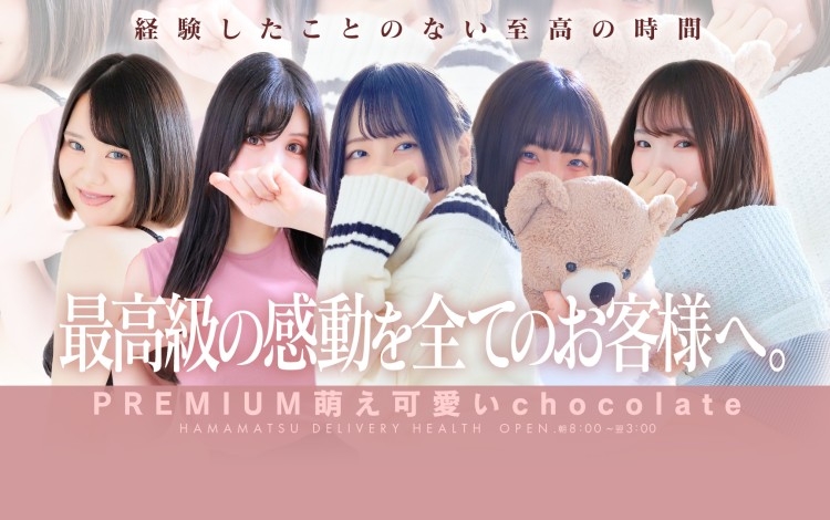 リーズナブルな価格で女の子とエッチなことが楽しめちゃうお店!『PREMIUM萌え可愛いチョコレート〜全てのステージで感動の体験を〜』スレンダーな女の子からグラマラスボディの女の子などいろんな美女が在籍中!店名にもある通り感動の体験ができること間違いなし!毎月変わるイベントはもちろん、このお店の口コミを書いたことがある方は月に一度のヘブン会員限定ニュースも必見です♪