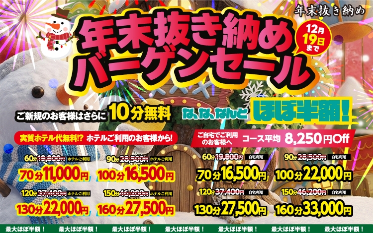 | 価格帯 | 通常料金60分19,800円 →クーポン利用70分11,000円 |