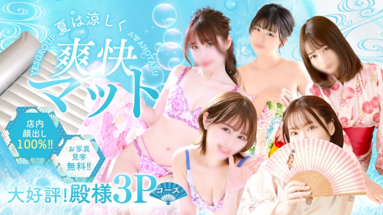横浜関内に唯一の泡マッサージ&マットヘルス店として多くのユーザーが通い詰めるお店。 今までになかった新感覚が体感出来るお店で、ハイレベルの女の子が色んな技であれこれ密着させて快楽へと誘います。 全国展開しているYESグループという事もあり絶対的な信用がおけるのもポイント!非日常を感じたい方は今すぐあわほたるへ!