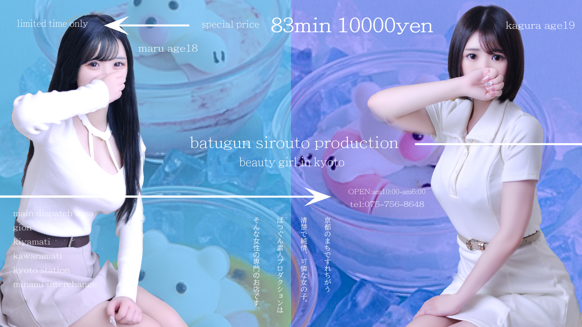 「ばつぐん素人プロダクション」は、1年中休みなく、午前10時から翌日の朝の6時までご利用可能。50分6,000円!70分遊んでも8,000円の京都でも格安なデリヘル店。実際に素人であることはもちろんのこと、初さやピュアさも込みの審査が設けられており、キャストは厳選されています。ヘブン写メ日記がかなり充実しているので、キャストの性格や嗜好を知るのに困りません。