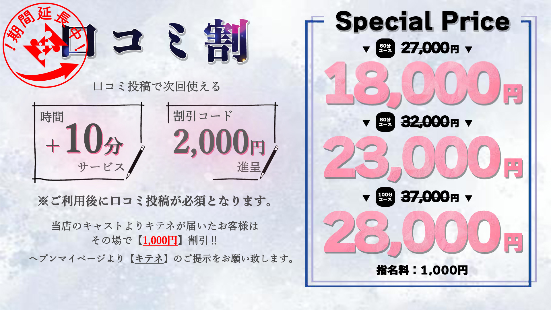 | 価格帯 | 通常料金50分25,000円 →クーポン利用50分10,000円 |