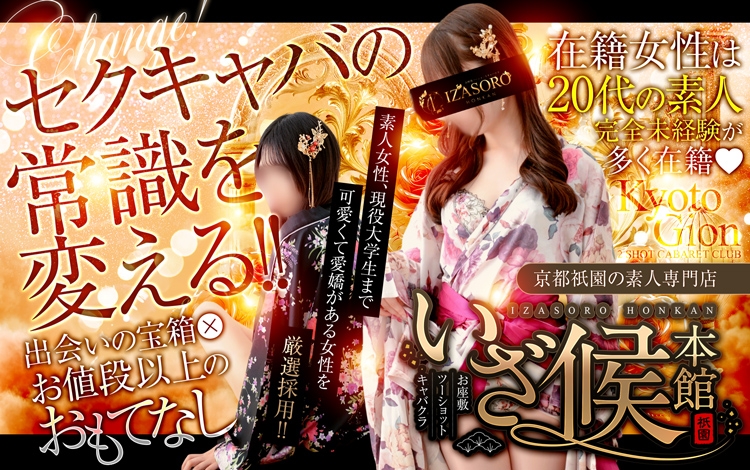 祇園に来たからには京美人の麗しい女の子との時間を楽しみたい!それなら新感覚の2ショットキャバクラ『いざ候 本館』はいかがでしょうか。古都・京都らしく襦袢姿の大和撫子たちとの極上の時間を過ごせます!お酒を飲みながら半個室で過ごせるので、まるで気分はお座敷遊び!「いつもの遊びに飽きてしまった……」なんて方も、間違いなく新鮮さを感じられるでしょう。また、時間内に3人以上のお姫様が入れ替わり、姫のタイプ指名は無料!ドリンク飲み放題で前払いというシステムもあり、安心して遊べる点も魅力なのです。