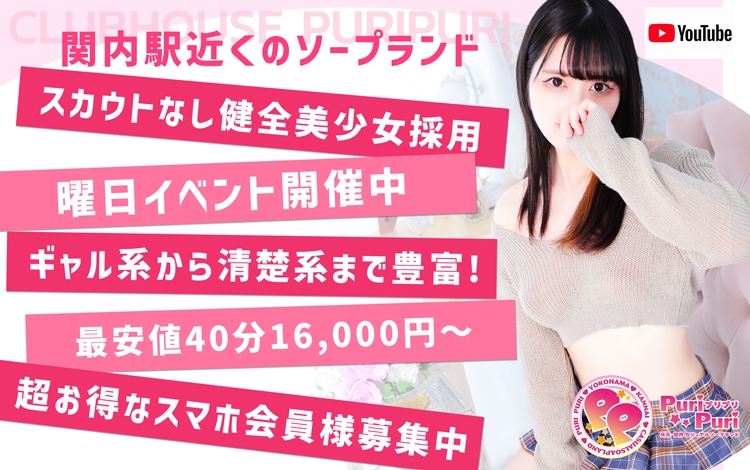 ぴゅあらば上の「クラブハウス プリプリ」のレビュー点数・レビュー件数はこちらとにかく若い子と遊びたい!そんな時は関内ソープ「クラブハウスプリプリ」しかないでしょう!面接採用率20%の狭き門を突破した女の子たちは、ご覧の通りやっぱりレベルが高いですね♪そしてルックスもさる事ながら、面接では【女性らしい優しさ】をもっているか?を重要視しているそうで、性格の悪い女の子は絶対に採用しないという徹底ぶり!同店は様々なタイプの女性が在籍しているので、貴方の推しが見つかること必至です♪