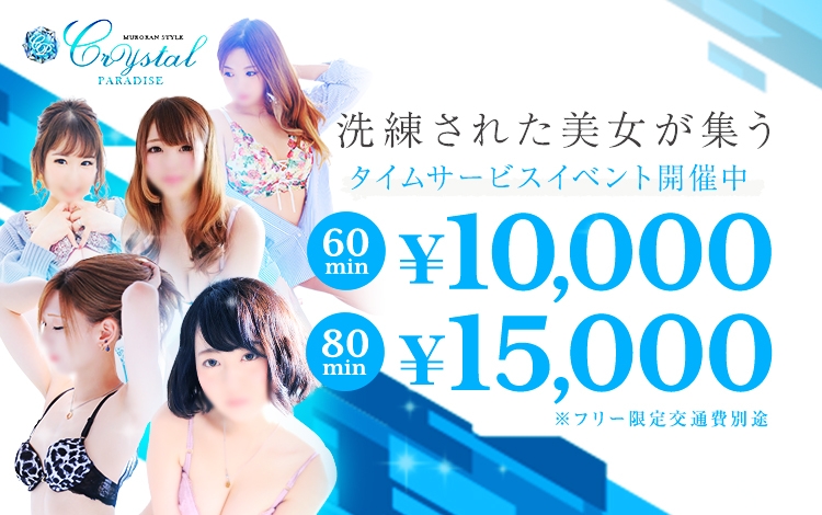幅広いタイプのキャストが在籍している『クリスタルパラダイス』。素人感満載の初々しい女の子から妖艶で綺麗なお姉さん系の女性まで色々なタイプのキャストが在籍しているのが特徴です。年齢層も20~40代と幅広く、きっとあなたにぴったりの女性と出会えること間違いないでしょう。お得に遊べるイベントが盛んに行われているのも嬉しいですね。また料金システムは非常にわかりやすくお値段も良心的!24時間電話一本で至福の時間をどうぞ♪