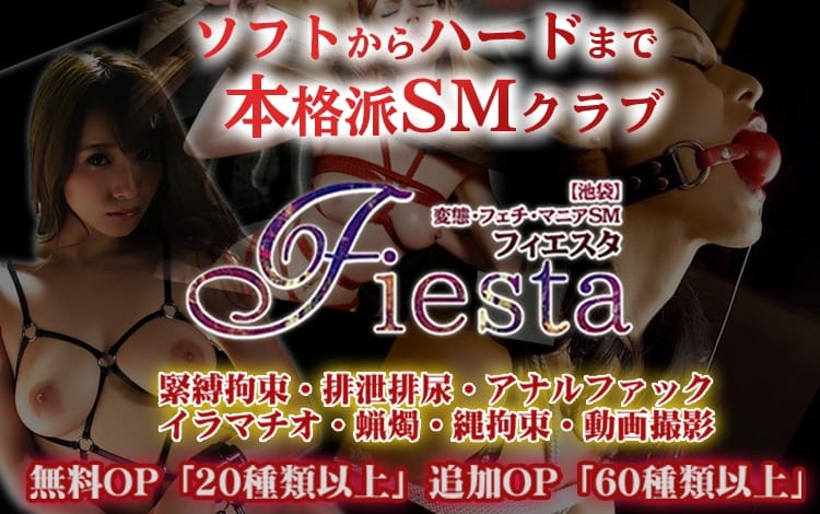 JR「池袋駅」北口より徒歩3分の好アクセス!ホテヘル『フィエスタ』はSM調教プレイができる専門店!あなたが思う変態的なプレイをドM女性に応えてもらいたい。という方、今までノーマルプレイだけで満足できなかった方、必見です!!もちろん、M体質の女の子がそろっていますが、SMの道具を駆使したり、言葉責めをしたり、こういったアイテムを使用して女性を服従させ、ドMの心をもっともっと目覚めさせてしまいましょう。あなたも女性も満足すること間違いなしです!