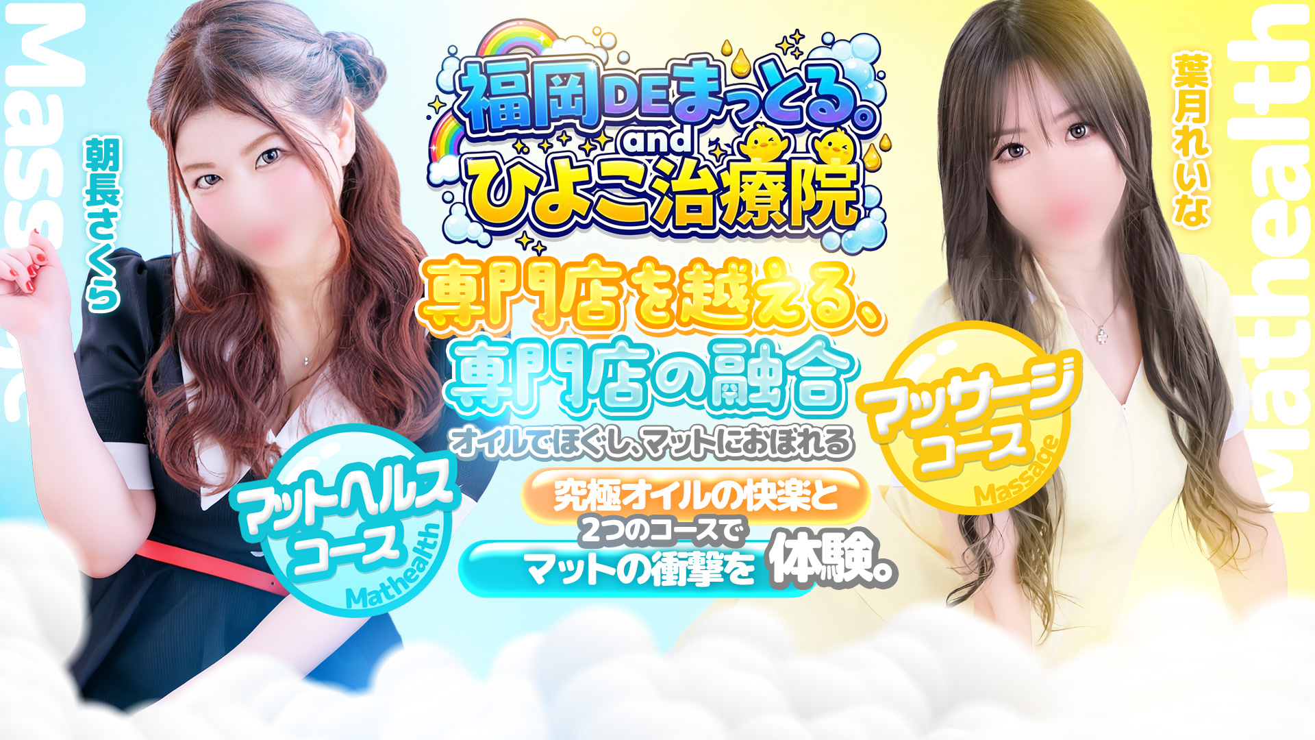 「疲れもストレスもMAXで家ではすぐ寝てしまう…」そんな頑張り屋さんのあなたには、ちょっとお出かけして「福岡DEまっとる(福岡ハレ系)」で遊んでみませんか?中洲エリアでも珍しいマット専門ヘルスである同店は、キレイなお姉さんが日頃のたまった疲れを癒やしてくれるんです!女の子は、20代を中心にスレンダー美人からぽちゃカワ女の子まで様々なタイプがそろっています!また、在籍数が豊富なので、気分によって色々な系統の女の子と遊びやすいのもうれしいポイント!きっとあなたのお気に入りの女の子が見つかりますよ。