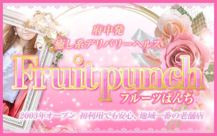 府中発の癒し系デリバリーヘルス『フルーツぱんち』♪ふんわりした癒し系の女の子が待っています!地域でも老舗といえるお店なので初めての方にもピッタリ!非喫煙・標準体型のみの厳選された在籍嬢が揃っています。セクシー過ぎず、健康的で現実的なカワイイ女の子を採用しているのでリアルさにおいてかなりポイントが高いのではないでしょうか?写真の別人のような加工は一切していませんので安心して利用できます!街で出会ったかわいらしい女の子と…妄想したままの夢の世界を現実にしちゃいましょう!