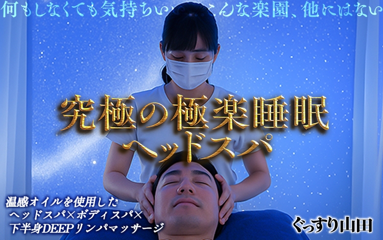 『ぐっすり山田 五反田店』は密着オイルエステとヘッドスパを複合した珍しいサービスがポイントのお店。まずは容姿&テクニック抜群の女性による、全身のもみほぐしからスタート。徐々に下半身に移動していく施術は抜群に刺激的です。存分に快楽を堪能した後は、専門店顔負けのヘッドスパ。あまりの気持ち良さに、施術中にぐっすり寝てしまう方も少なくないのだとか。性と睡眠、人の欲求にアプローチするサービスでリフレッシュ効果は抜群。