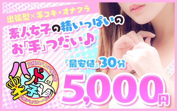 広島で数少ないハンド専門店、全国的にそのニーズがかなり上がってきている中で、究極のハンド専門店がこちら、お手軽な値段で、地元にいそうなかわいい女の子がハンドで最高のサービスをしてくれるので1回は試してみたいお店です。女の子と密室で普段自分のハンドでは出せない究極の感覚で・・・想像しただけですごいですね!!短い時間で遊ぶのもいいですし、あえて長い時間で女の子とお話ししながら下のコリをほぐしてもらうのもアリですね。