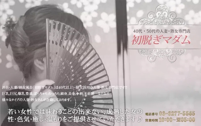 当店は渋谷で希少な40代50代60代の美熟女さんのみを厳選採用した受付型ホテルヘルスです! 熟女好き男性の楽園「初脱ぎマダム」は40代/50代/60代の女性のみが在籍する人妻・熟女専門店です!! [巨乳][巨尻][爆乳][豊満][ぽっちゃり][むっちり][細身][長身][小柄][未経験]...