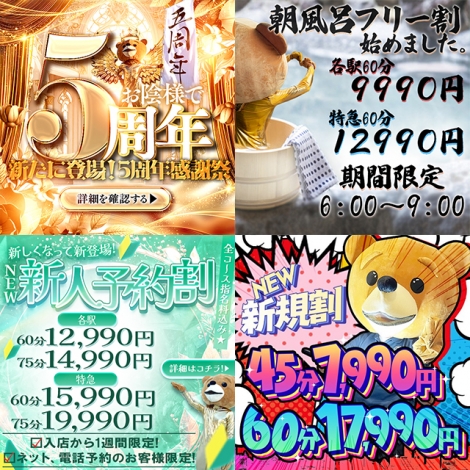 20代が女性が在籍している激安ソープランド。基本料金がすでにかなり安いのですが、割引イベントクーポンも多く用意しているが、メルマガ登録で受けられる割引が最大8,000円引きとかなり強力なので、メルマガ受け取りの設定は必須!口コミでも「非日常的癒し空間」「コ・ス・パ最強」「写真通りの女の子」と好評な声が多く見られます!