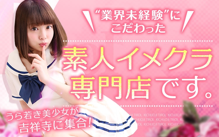 吉祥寺風俗「チロル」は、JR中央線・京王井の頭線吉祥寺駅近くにある素人イメクラ専門の風俗です。風俗未経験の選りすぐりの女の子と「恋人」「痴漢」「夜這い」のイメージプレイが楽しめる風俗優良店です。
