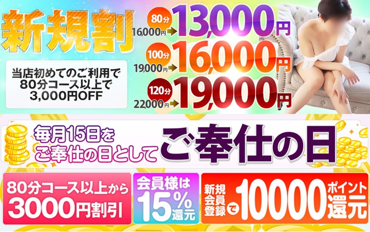 | 価格帯 | 通常料金80分16,000円 →クーポン利用80分13,000円 |