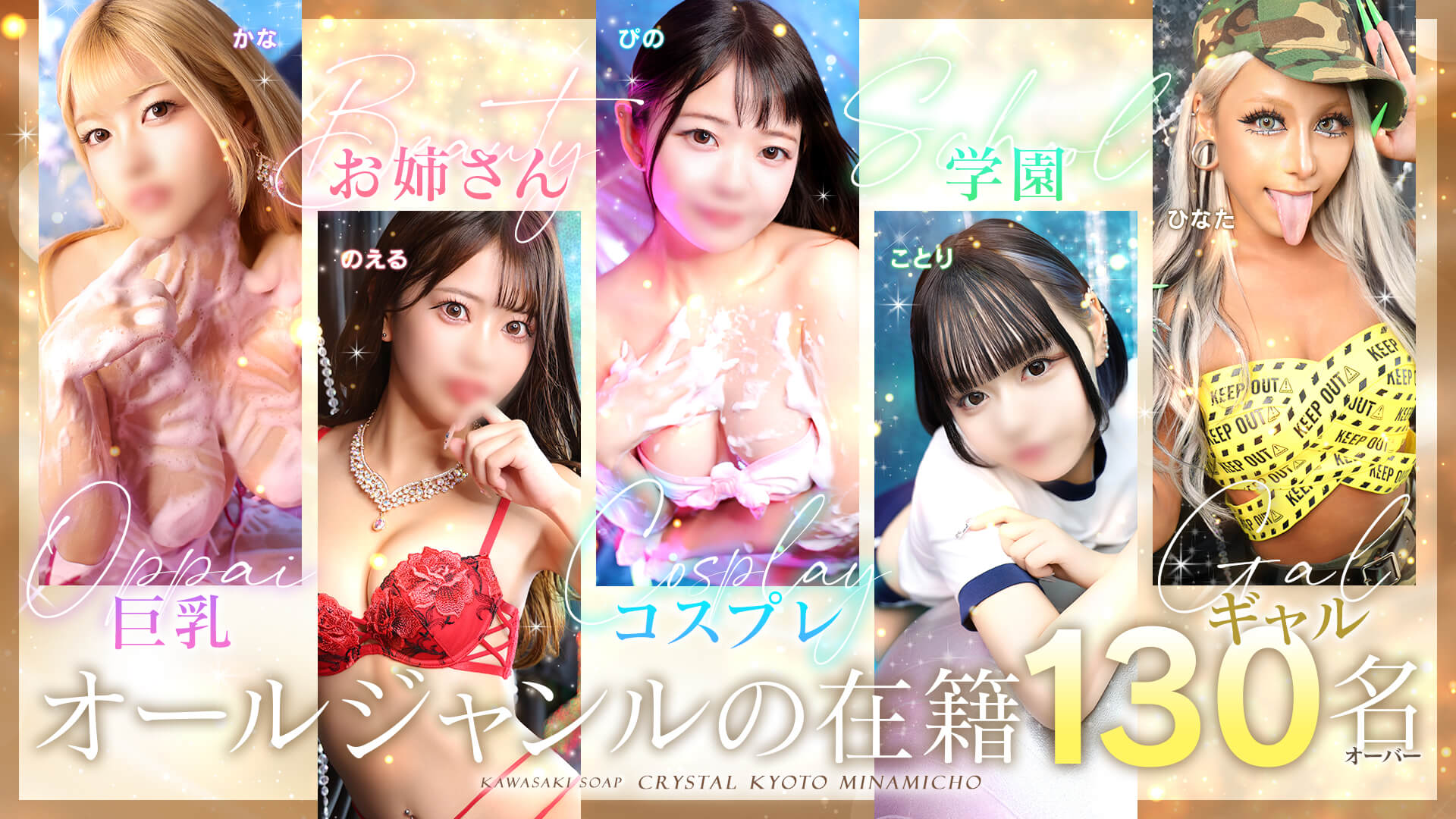 20代前半の若い女の子達が多く在籍する川崎のソープ「クリスタル京都 南町」。神奈川で絶大な支持を得ている「京都グループ」でトップクラスの在籍数を誇り、「ギャル」「素人系」「清楚系」「学園系」「アイドル系」など様々なタイプの女の子が揃っています!あなた好みの女の子もきっと見つかるでしょう。またリーズナブルな価格設定も魅力のひとつです!圧倒的に洗練された美女と、恋人同士のような甘く楽しい時間をお楽しみください。