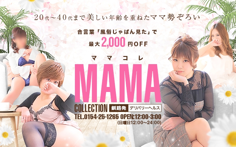釧路市を中心に展開している、人妻デリヘル店『ママコレ』。在籍しているママさんの美しい容姿はもちろん、会話やサービスにいたるまで、非常に高い採用基準を設けているため、ヌくだけがすべてじゃない体験を味わえます。「心からの優しさ」を兼ね備えた、美人素人ママさんとリアルな不倫体験...気になる方は要チェックなお店です。ぜひ一度お試しください!きっと今まで経験したことのない快感が、あなたを待っているはずです!