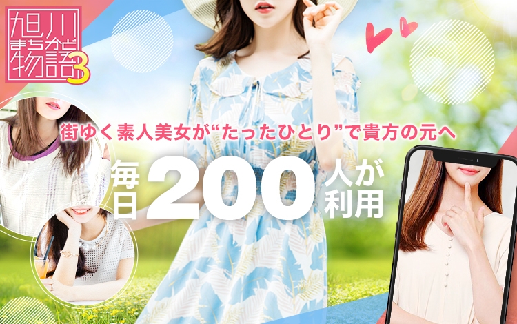 等身大の女性と遊ぶなら『旭川まちかど物語3』で。同店は独自のルートから20代から30代の"普通のお姉さん"中心に、デート感覚で楽しく遊べる女の子が大集結しております。合流後はホテルへ直行、2人でおでかけ、おうちデート…なんでもOK!そしてなんといっても、旭川ロータリー近郊ホテル街でのチェンジが一回無料というのですから驚きです…!