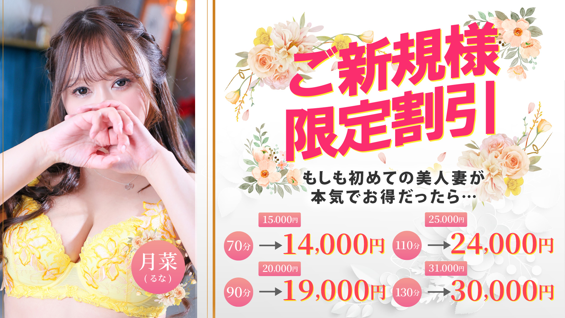 | 価格帯 | 通常料金70分15,000円 →クーポン利用70分13,000円 |