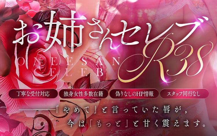 老舗人妻デリバリーヘルス「お姉さんセレブR38」。20代〜40代の若妻・人妻・熟女などの幅広いタイプの女性たちが、イケナイ出会いを待ちわび、胸をときめかせてあなたを待っています。キレイで精神年齢の高い人妻のみが在籍。彼女や妻とはできない至福のひと時を、じっくり、ねっとりと味わってみませんか?大人の女性と非日常的で背徳感に満ちた疑似恋愛は極上の体験になること間違いなし!今こそモラルの呪縛を解き放ち、素敵に歳を重ねた女性とあなただけの秘め事をご堪能ください。