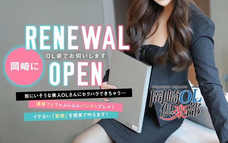 仕事で疲れた貴方を癒すのは、優秀な美女OLたち。社内では決して叶わない、ドキドキの「オフィスラブ」を体験できる特別な空間をご用意いたしました。「部下に命令したい」「優しい先輩に甘えたい」「クールな上司を翻弄したい」そんな貴方の妄想を、リアルにしてみませんか?『岡崎OL倶楽部』は、同僚の事務員さんのような子と遊べるお店です。店名の通りOLコスチュームでのプレイを看板に据えているこちらの店舗は、まるで職場の女の子と大人の関係になった気分でサービスを受けることができます。オフィスラブのシチュエーションプレイに特化したオプションも特徴の一つで、パンスト着衣やパンスト破りなどが可能です。職場であの子やこの子と遊んでみたいと夢見たことのある男性なら、大興奮間違いなしのお店ですね。気軽に遊べるお得なプランもあるので、気になった人はぜひ遊んでみてください!