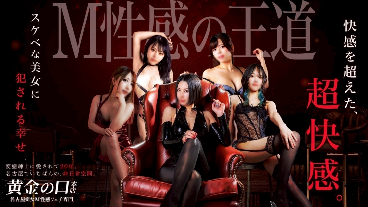 濃厚なフェラや寸止めプレイは勿論、普段パートナーにはお願いできない男の潮吹きや前立腺マッサージ、アナル責めなどプロの技で責められて限界に挑戦できます!来たれ我こそはM男たる者!黄金の口名物の『痴女乱入』は乱入してきた痴女軍団が親の仇を取るかのように激しく攻め立て、身動きの取れない貴方を快楽の天国へと誘(いざな)ってくれます。複数の痴女たちに貴方のいやらしいねっとりした欲望を発射してもらい、日々を生きる活力をチャージしながら平凡な日常に極上のスパイスを加えてください。