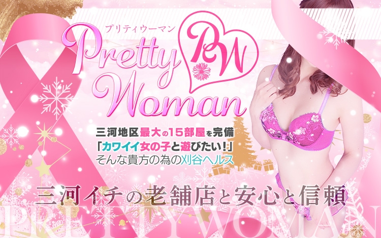 刈谷駅から近くにある『プリティーウーマン』◎「エッチなひとときを堪能したい」といった欲望を見事に叶えてくれるお店なんです。女の子のタイプは素人系、清楚系をはじめ、読者モデルや女優なんじゃないかと思ってしまうくらいのハイレベルな子たちが在籍。そんな女の子たちが濃厚で一生忘れられないサービスをしてくれるのだからたまらない。何度でも通いたくなるお店ですね。今日はどんな女の子とどういうエッチなプレイをしますか?