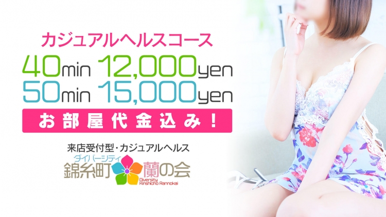 あらゆるジャンルの女性とお遊びできる!錦糸町にお店を構えるカジュアルヘルス【ダイバーシティ錦糸町蘭の会】錦糸町の南口から徒歩2分!陸橋を渡ってすぐです!そしてかわいい系からきれい系まで在籍しておりきっと写メ日記だけでは我慢出来ず会いたくなってしまうはず。期間限定で50分で10,000円でお遊びいただける!