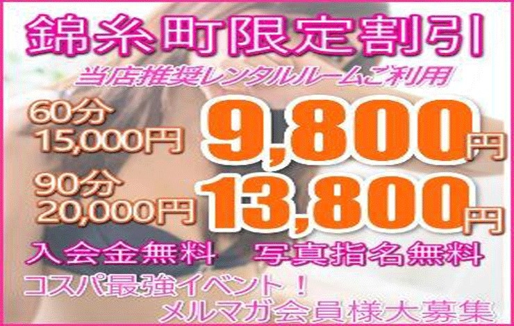 ☆錦糸町『イベントSP 60分9,000円~』の激安デリヘル!!! 格安店にありがちな振替写真等は一切なし!本人撮影の写真を使用しております♪ 【女の子のクオリティー】【安心価格】【納得のサービス】!