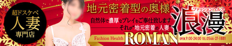 三河地区で人妻さんと濃密な時間を過ごしたい貴方には「浪漫」がオススメ!刺激に飢えたドスケベな奥様が多数在籍中です!羞恥心や屈辱感を欲するドMな奥様から性に貪欲な責め好きドS奥様まで様々なタイプの奥様を取り揃えております!きっと貴方の好みにあったプレイが楽しめます♪官能的に身体をくねらせ、甘い吐息をもらすエロスに満ちた奥様とこの上ない快感を一度味わってみませんか?今すぐ出勤情報をチェックしてみてください!