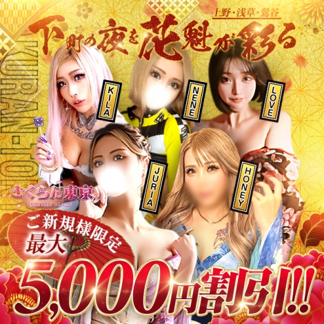 只今話題沸騰中!上野・浅草・鶯谷エリア最高峰!淫乱花魁美女軍団~さくらん東京~グランドオープン記念割引開催中!70分15,999円~都内全域出張!この価格帯では出逢えない高級店に匹敵するクオリティ!