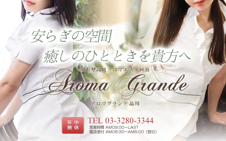 日々の疲れた体を癒してくれる上質なアロマエステ「アロマグランデ品川」。艶やかな女性セラピストの官能的で情熱的な施術。ソフトタッチのマッサージから温もりを感じるマッサージまで幅広い施術で、癒し空間へ誘われます。セラピストの抜群なスタイルに白い制服姿がなんともそそります!さらにセラピスト1名での施術だけでなく複数名による施術も体験できます。品川エリアで、この上ない極上空間を体験できる「アロマグランデ品川」です。ぜひお店をチェックしてみてくださいね。