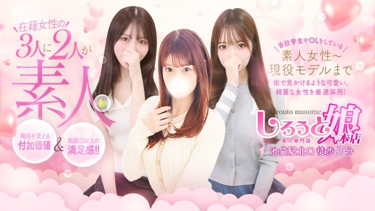 池袋の「しろうと娘」は地域最強のS級素人娘が多数在籍しているホテヘルです。もちろん在籍している女の子は業界未経験率90%のホンモノの素人娘です!20名以上の厳選された素人娘からあなた好みの女の子がきっと見つかるはずですよ。女の子の写真は加工や修正もないので実際会ったら「写真と違う!」なんていうこともないはずです。安心・安全に自分好みの女の子と楽しみたい方は是非お店の詳細をチェックしてみてくださいね。