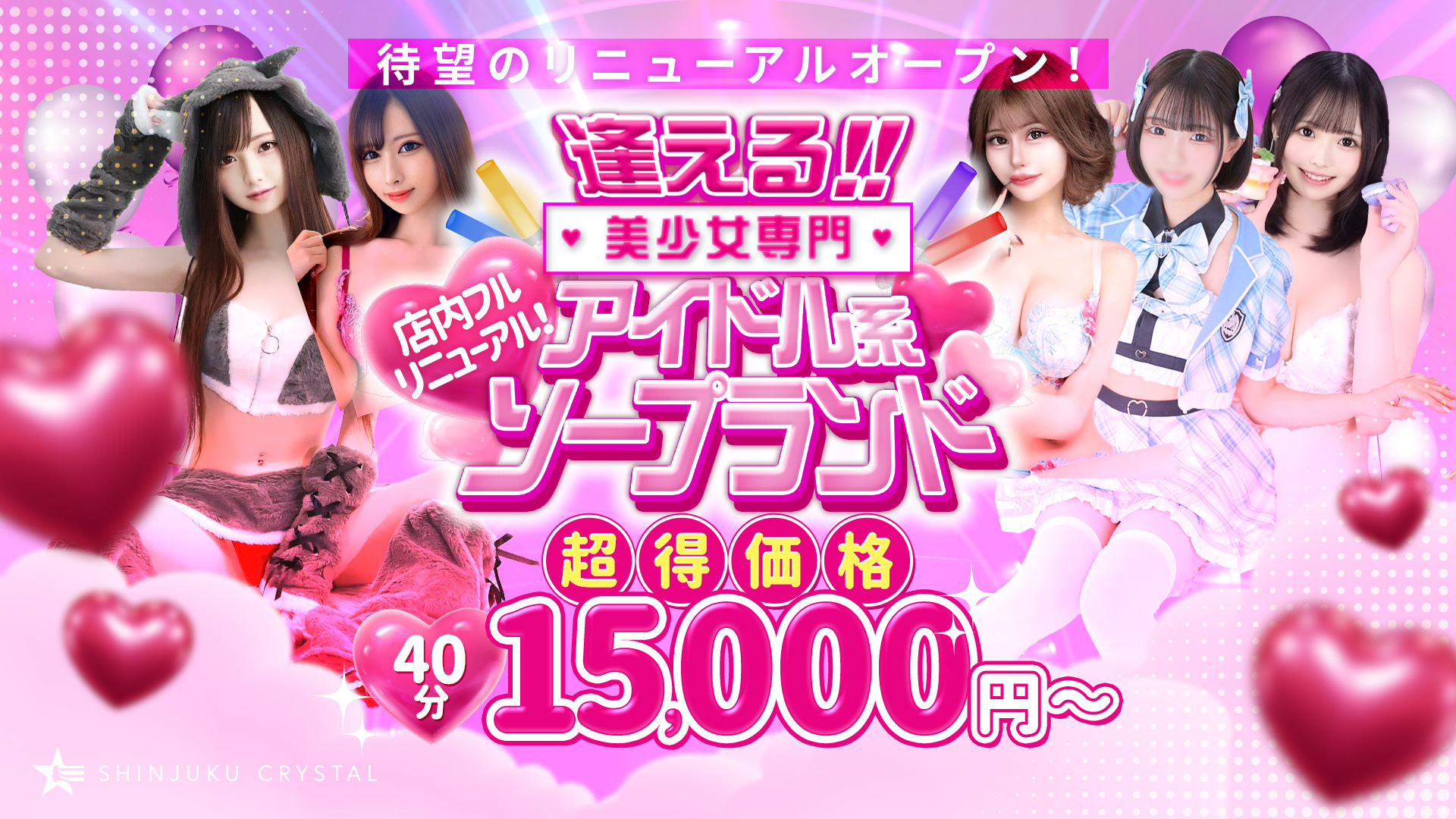 老舗の大手グループが運営するソープ『新宿クリスタル』で、癒しのひとときを過ごしませんか?駅徒歩3分ほどの好立地にあるため、仕事終わりでも気軽に立ち寄れますよ。20代前半の若い女性が中心となっており、妹系・お姉さん系・ギャル系・原宿系・アイドル系・清楚系など、幅広いタイプが揃っています。小柄な子からモデル体型の子までスタイルもさまざまなので、好みの女性が見つけやすいでしょう。どの子も明るく笑顔が素敵なので、会話をしているだけでも癒されること間違いなしです!
