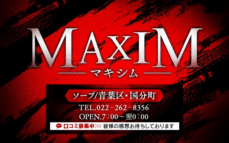 ソープランド激戦区の仙台エリアにある「マキシム」は、疲れた男性を癒すことの出来るお店です!落ち着いた雰囲気の清潔感がある美女たちは、20代から30代の子が中心に在籍しています。浴場への道を歩く興奮そのままに、遠慮せず扉を開けてしまいましょう!その先にはお風呂の楽園が待っています。洗練された美女から背中を流してもらったら、あなたの心もすっかり虜になること請け合いです。しっかり湯船に浸かって、身も心もリフレッシュしましょう!
