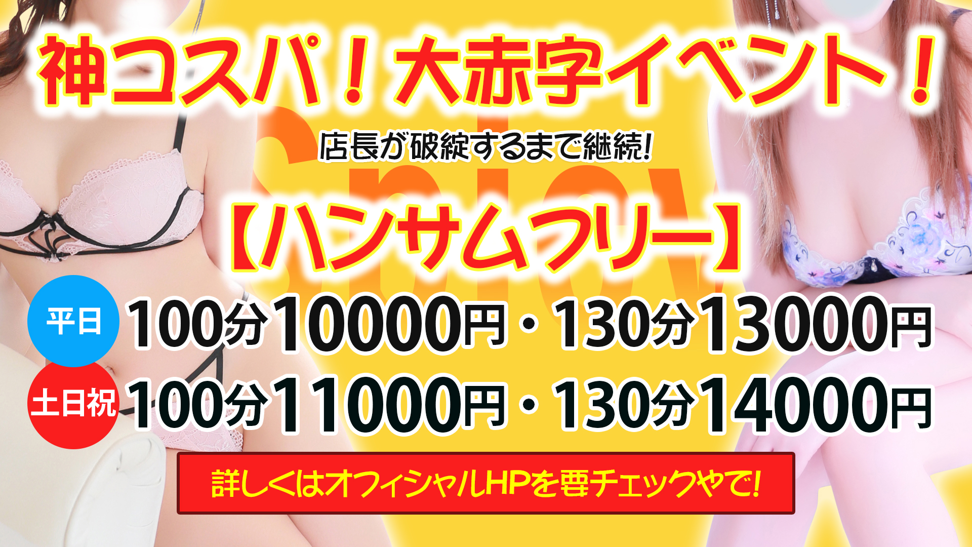 横浜のスタンダードなデリヘル店。特徴としては60分9,000円~という格安の価格で利用することができるということ。それだけではなく、100分12,000円~で利用できる割引・イベントも随時開催中のお店。どのコースでも無料オプションの用意があるが、90分以上のコースだとさらに過激なオプションがつけ放題になります。