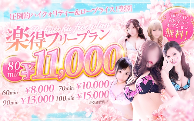 18歳から20代の若い子を集めた激安デリヘル店『楽園』。激安店という概念を忘れるぐらいのハイレベルなキャストが最上級の癒しを与えてくれる!それでいてお財布に優しい低価格!それでいて同店はオプションが全て無料だというのが最大の魅力!この価格で全オプション無料は言うことなし! 他店では味わえない感動と驚きをたっぷり味あってみてください!