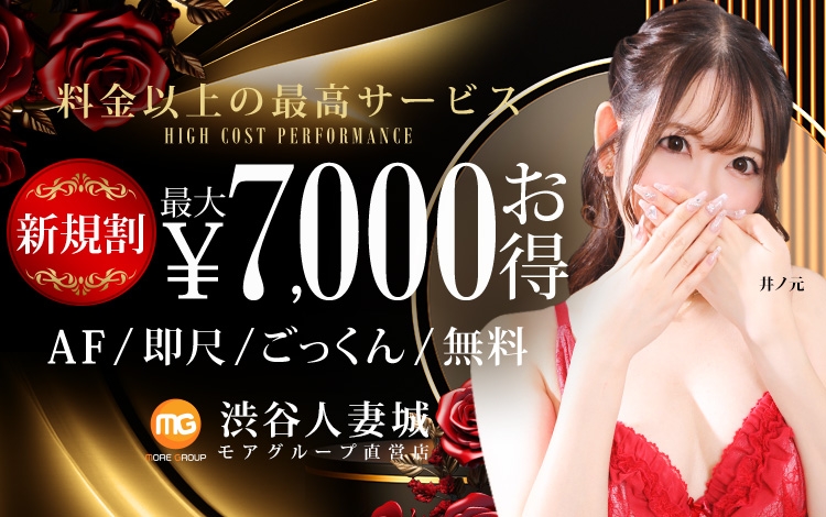 世の中お城は数あれど、男子の一位はそう「人妻城」!大手グループならではの高水準&在籍人数!待ち合わせて不倫気分で渋谷を歩き、ホテルに入った瞬間オンナの顔に…即尺・ごっくん・AFすべて無料の濃厚プレイ!
