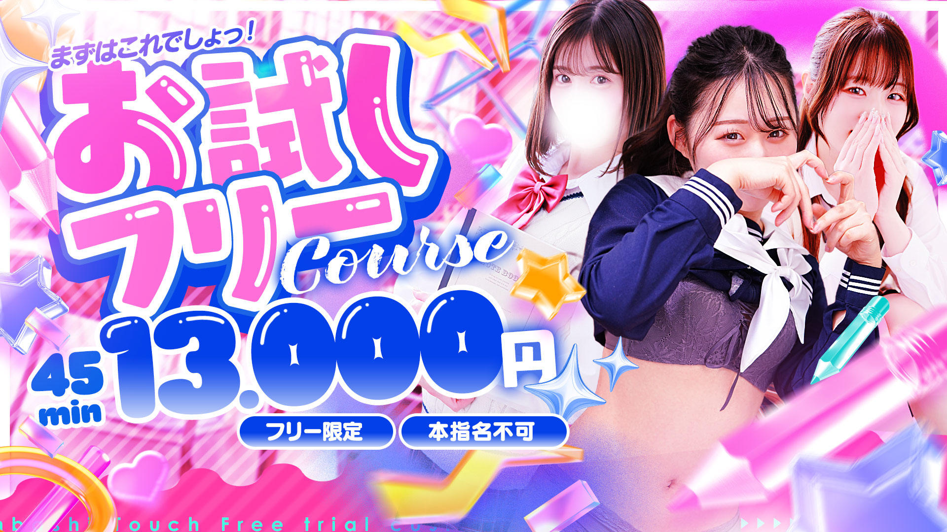 可愛すぎて敵なしの美少女と、夢のような現実が【新橋たっち】で楽しめちゃう!痴漢・夜這い・恋人コースなどなど不動の人気シチュエーションから、攻めたい人も、攻められたい人も楽しめちゃうコースまで、イメクラで楽しみたい妄想の世界を完全網羅しています!!文句なしの美少女とあなたの世界で巻き起こるストーリー。脚本監督はもちろんあなた!頭の中で膨らむその妄想を、ひとつ残らず叶えちゃいましょ!!