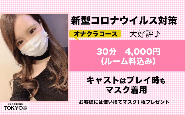 【税込み】45分・1万円!オナクラコースは【ルーム代込み】30分・5,000円♪「TOKYO娘。」は”普通の女の子たちをより輝かせる”をコンセプトに国民的美少女の輩出を目標としたカジュアルヘルスです。