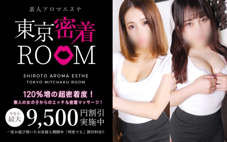 エッチな密着マッサージしかコースがない??「東京密着ROOM」は、初々しい素人の女の子による濃厚密着アロマエステ専門店!在籍する女の子は素人ばかりなので、マッサージ中に素で照れたり恥ずかしがったりすることも。施術中はふともも・おっぱい・お尻の感触。女の子の体って、こんなに柔らかかったっけ?と再認識しちゃう程、とにかくサービス中はほぼ密着。近すぎてお互いが恥ずかしくなるくらいのマッサージ!あの頃のドキドキを思い出してみませんか?
