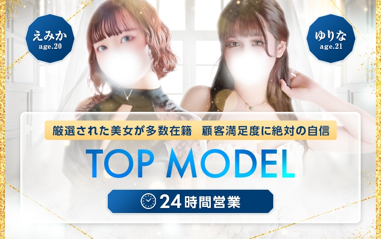 素人だけど、そこには輝きを秘めている…そんな可愛い、綺麗、美人な女性が「トップモデル」で出逢えます。採用基準が高く、選び抜かれた彼女たちの美貌に貴方もきっとトキメキを隠せない事でしょう。トキメキを隠せないまま、彼女たちの虜になり、貴方はされるがまま…。見た目だけじゃない、質もサービスも最高峰な彼女たちによって貴方は何度もトキメキ、まるでその瞬間に何度も何度も恋に落ちてしまうような、そんな錯覚に陥ってしまうかもしれません。