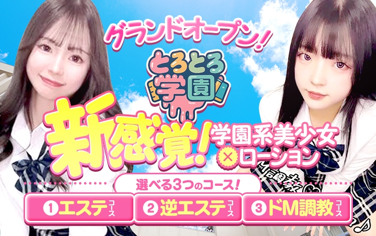 祇園エリアで注目の『とろとろ学園』は、人気の学園系とローションを使った施術が融合した新ジャンルのエステ店です!学生服が似合う女の子たちは、若くて可愛いタイプが多め。清楚系からギャル系までジャンルも幅広いので、好みのタイプを見つけ出す楽しみもありそうですね!コースは3つから選ぶことができ、通常の「エステコース」のほか、女の子へのソフトタッチが可能な「逆エステコース」と「ドM調教コース」も人気があるそうですよ♪