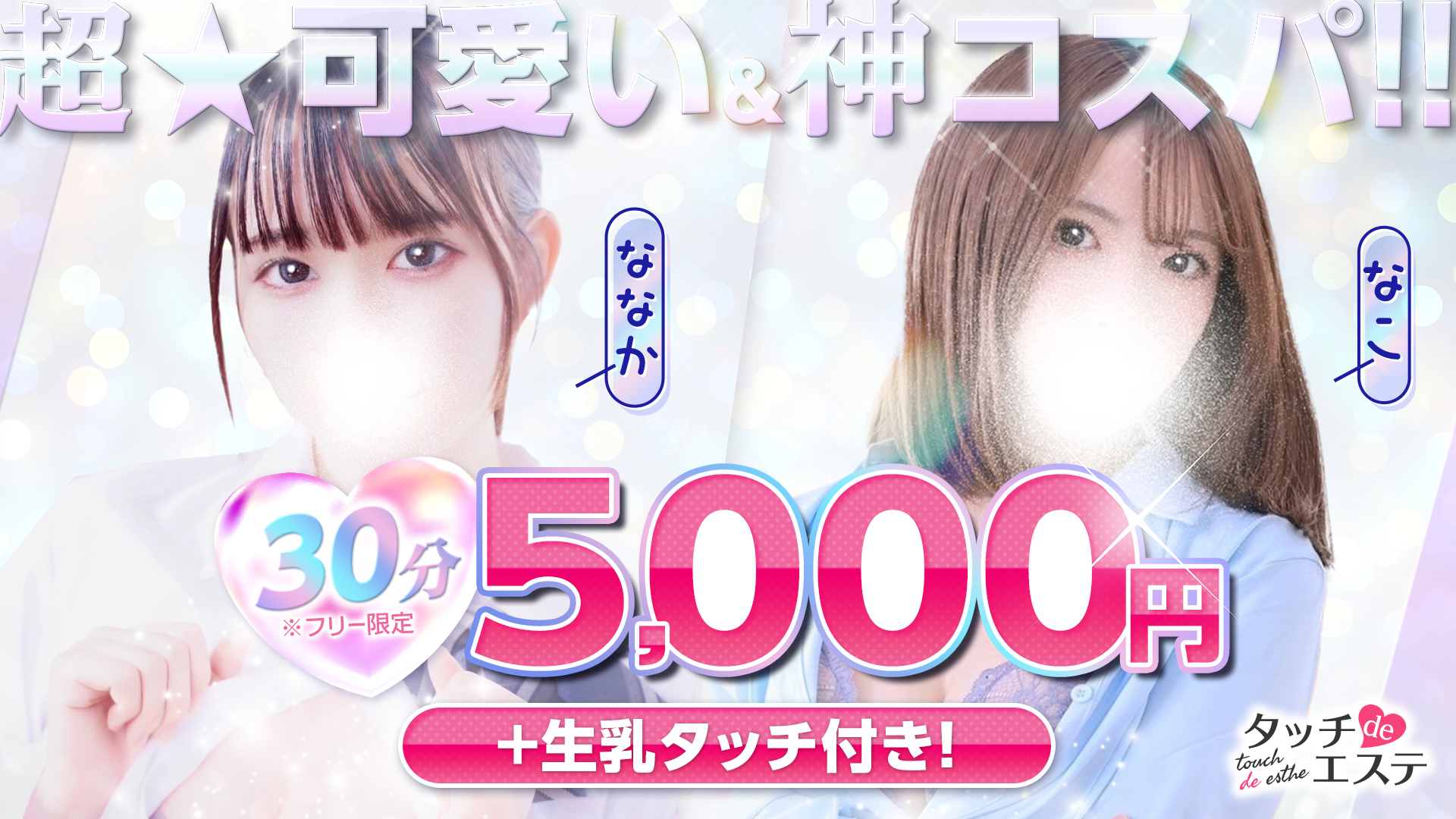 癒やしと快楽の両方を味わいたい方にピッタリなのが、『タッチdeエステ』です!オイルをたっぷりと使用したマッサージは、気持ち良さバツグン。見目麗しい女性達による柔らかな手さばきは、溜まった疲れを大いに解消してくれることでしょう。それだけでなく、回春エステも楽しめるのが同店の注目点。興奮モノのエロいサービスを楽しむこともできるんです!そして、リーズナブルな料金設定も見逃せないポイント。各コースが懐に優しい値段なので、気軽に気分を高めたい時におすすめです。