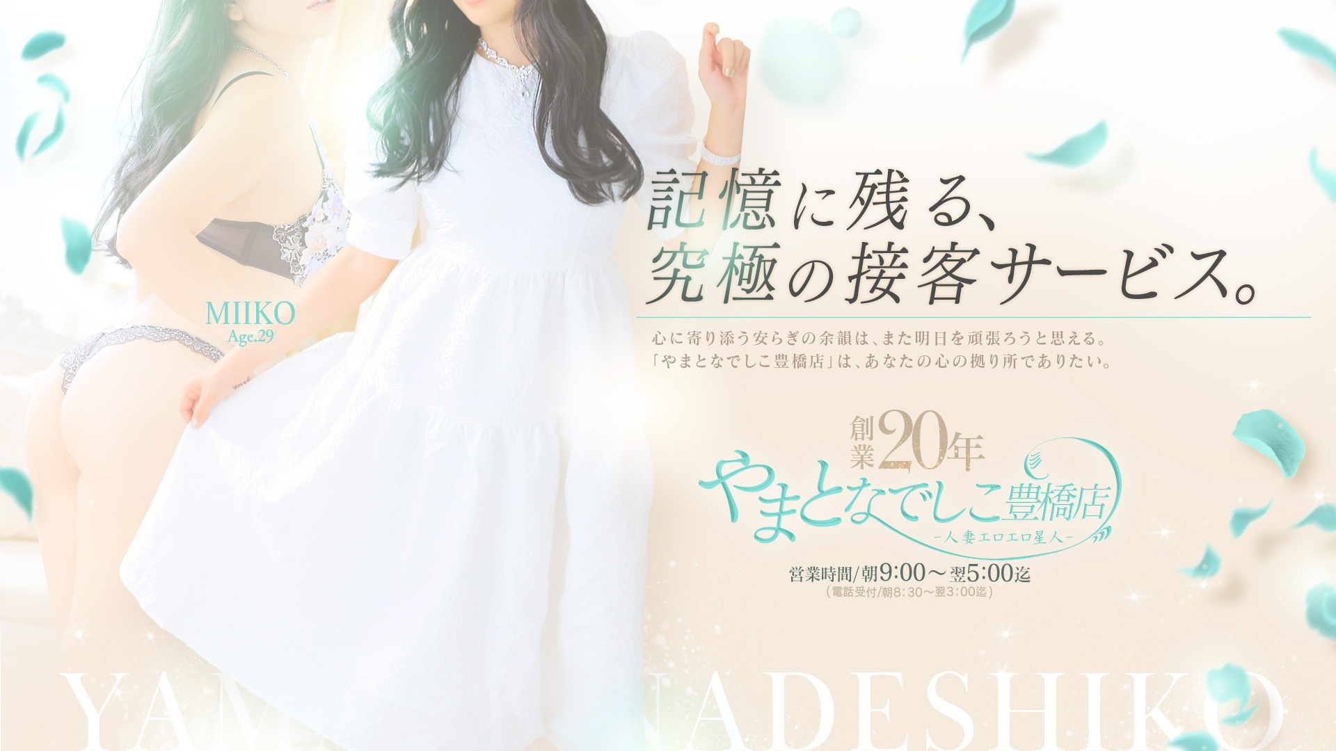 ぴゅあらば上の「やまとなでしこ豊橋店~人妻エロエロ星人~」のレビュー点数・レビュー件数はこちら人妻デリヘル『やまとなでしこ豊橋店』は、まさしく“やまとなでしこ(大和撫子)”の名に恥じない心身ともに美しい女性を厳選しております。